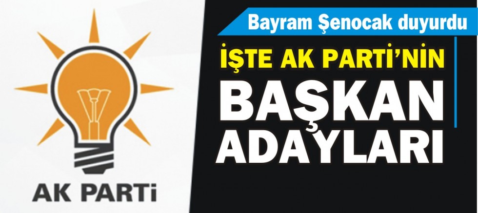 AK Parti İstanbul İl Başkanı Bayram Şenocak, bazı ilçelerin başkan adaylarını açıkladı. AK Parti Genel Merkezi’nde yapılan istişareler sonucu belirlenen isimler Erdoğan‘ın onayıyla kamuoyuna duyuruldu. İşte o isimler: