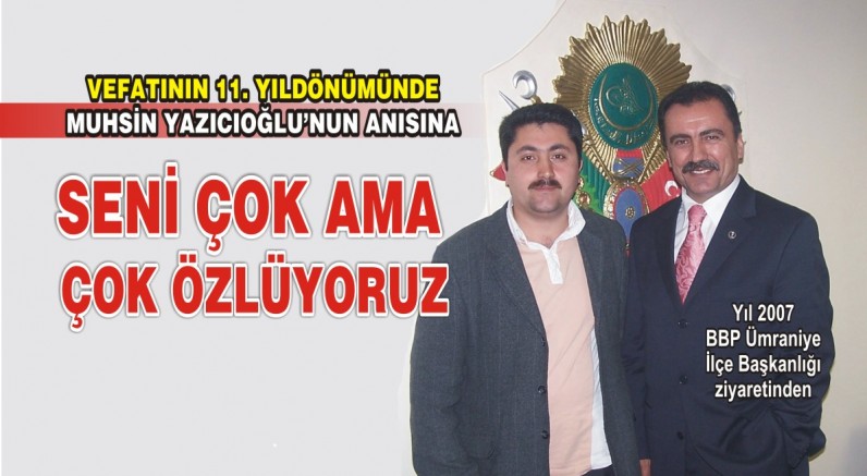 Yaşantısını vatan ve millet sevgisine adayan, darbe dönemlerinde yaşadıklarına rağmen devletine küsmeyen ve Anadolu gençliğinin okuyarak adam olmasını hedefleyen bir lider olarak öne çıkan Vefatının 11’inci yılında şehid Muhsin Yazıcıoğlu ve beraberinde şehit düşen gazeteci İsmail Güneş ile dönemin BBP İl Başkanı Erhan Üstündağ, İl Başkan Yardımcısı Yüksel Yancı ve Belediye Meclis Üyesi adayı Murat Çetinkaya’yı rahmetle anıyoruz.
